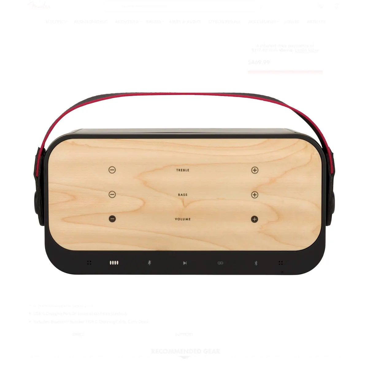 Ngoài ra, bảng điều khiển cảm ứng của Fender Riff được hoàn thiện từ gỗ phong tự nhiên, tạo bề mặt bóng đẹp cho cảm giác cao cấp khi sử dụng. Toàn bộ thân loa sử dụng lớp nhựa đen chất lượng cao, góp phần tôn lên phong cách trẻ trung đầy năng động.