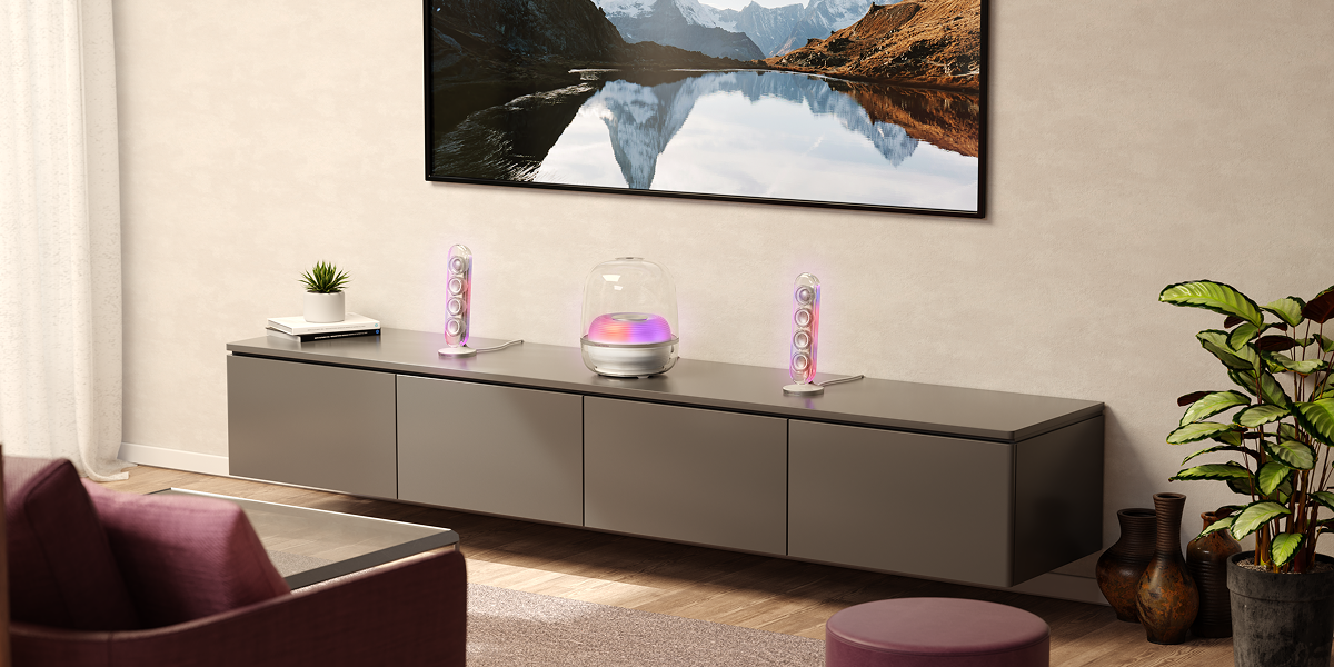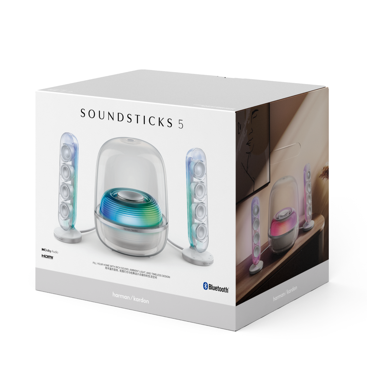 Loa Harman Kardon Soundstick 5 tạo được thành công nhờ vào thiết kế trong suốt đặc biệt. Ngoài chức năng phát âm thanh thì chiếc loa còn có thể biến tấu để trở thành điểm nhấn trang trí ấn tượng.