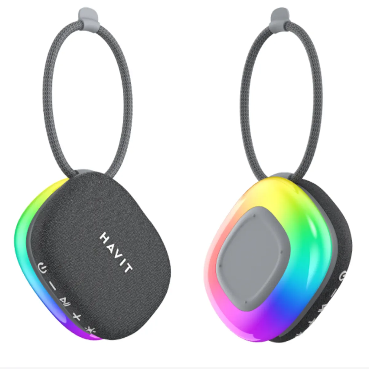 Để tăng tính tiện lợi, Havit còn thiết kế thêm một dây đeo có khả năng co giãn tiện lợi. Người dùng có thể dễ dàng móc dây đeo vào balo, vali trong các chuyến đi. Khi không cần sử dụng, dây đeo này có thể quấn gọn xung quanh loa mà không gây mất thẩm mỹ.