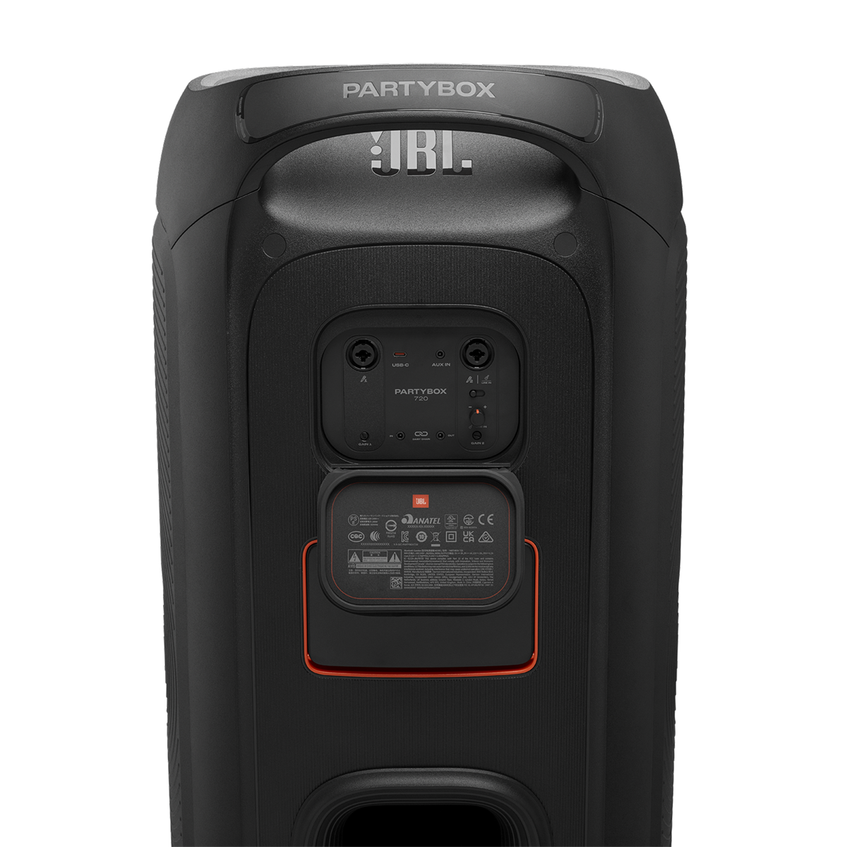 Được thiết kế để sử dụng ngoài trời, loa Bluetooth JBL Partybox 720 có chuẩn kháng nước IPX4, đảm bảo các linh kiện bên trong không bị hư hỏng do mưa, nước bắn. Bên cạnh khả năng phát nhạc, Partybox 720 còn kết nối với micro, nhạc cụ để hát karaoke.