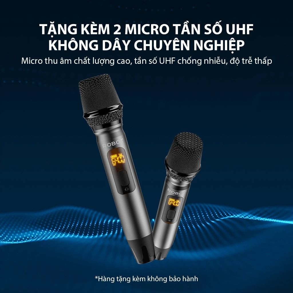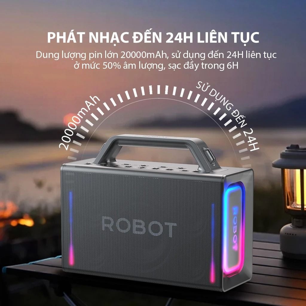 Giảm 500K khi thanh toán bằng thẻ tín dụng SacombankLoa Bluetooth Karaoke Robot RB90 100W kèm 2 micro trang bị hệ thống 5 màng loa phân tần hiện đại, tạo nên hiệu ứng âm thanh sống động. Công suất lên đến 100W cùng chip DSP giúp tối ưu giọng hát và hỗ trợ lọc tạp âm. Ngoài ra, viên pin 20000mAh tích hợp sẵn cho khả năng giải trí liên tục suốt 24 giờ.