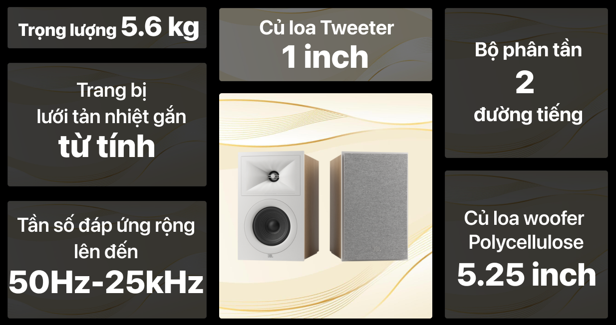 Loa cột JBL 250B sở hữu thiết kế Bookshelf 2-Way nhỏ gọn hiệu suất mạnh với loa trầm 5.25 inch và loa âm cao màng nhôm 1 inch, cho chất âm sống động. Loa có HDI Waveguide cải thiện hướng âm, tái tạo tần số cân bằng trên và ngoài trục. Sản phẩm sở hữu trọng lượng 5.6 kg, giúp người dùng dễ dàng đặt ở bất kỳ vị trí nào.