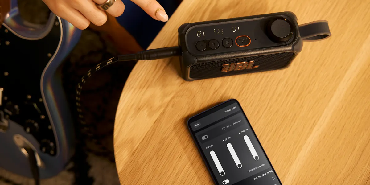Thông qua ứng dụng JBL One, toàn bộ thông số như volume, EQ, tone, pitch và key có thể điều chỉnh trực tiếp từ smartphone. Ứng dụng cũng cho phép kích hoạt công cụ luyện tập và AI stem separation mà không cần thao tác trên thiết bị.