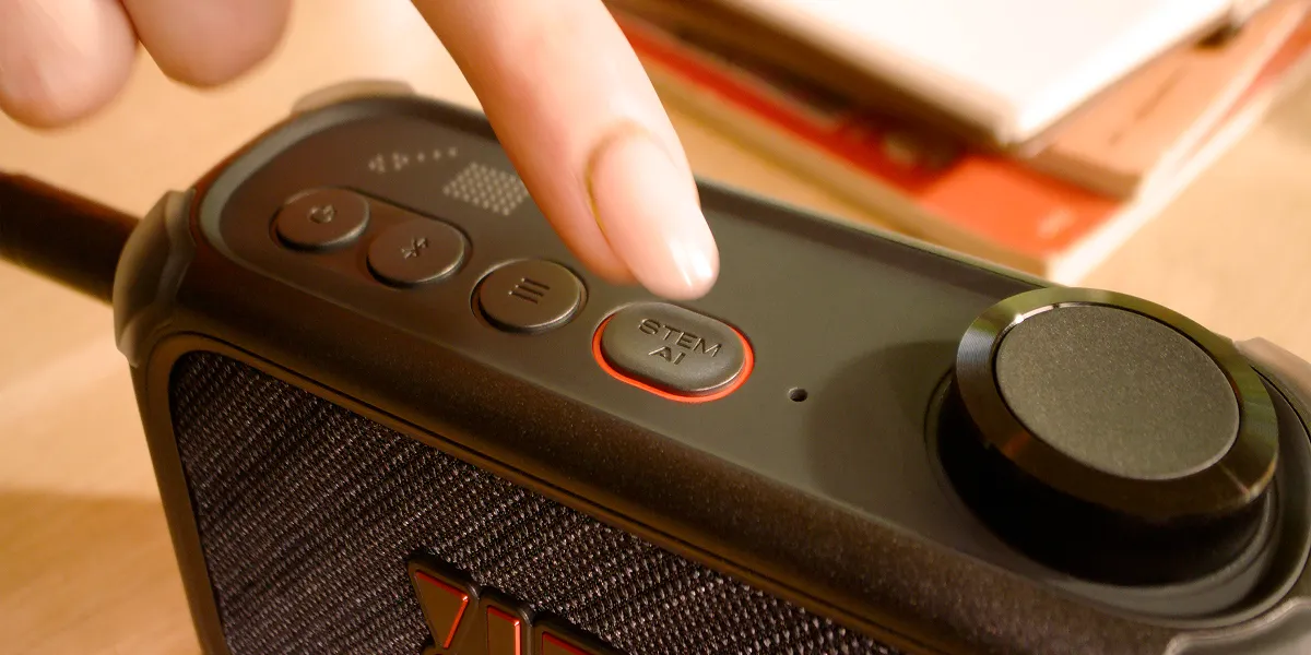Điểm nhấn của sản phẩm này là công nghệ Stem AI real-time separation giúp tự động tách vocal, trống và guitar ngay khi phát nhạc qua Bluetooth. Người dùng có thể tách ra từng phần để luyện tập, giúp thực hành tương tác thay vì chỉ nghe thụ động.
