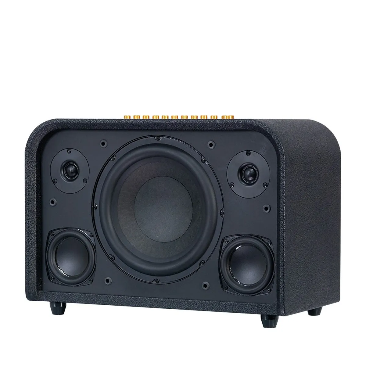 Hệ thống các phím chức năng và cổng kết nối được đặt khoa học ở mặt trước và mặt sau. Người dùng có thể thao tác với USB Type-A, cổng Optical, Micro, Guitar và các cổng Line In–Line Out một cách thuận tiện. Màu sắc được phối theo phong cách trung tính, cổ điển, dễ kết hợp với nhiều không gian giải trí.