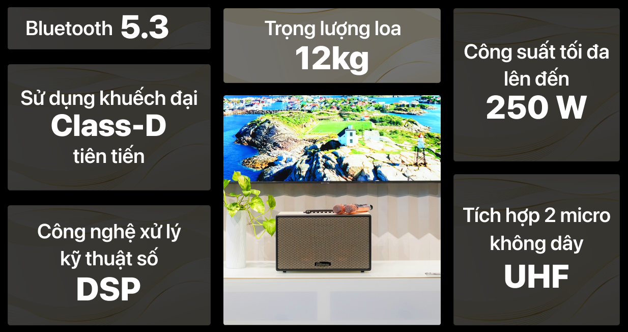 | Tính năng khác | Chức năng Echo, Reverb, chống hú, tăng cường âm trầm,... |