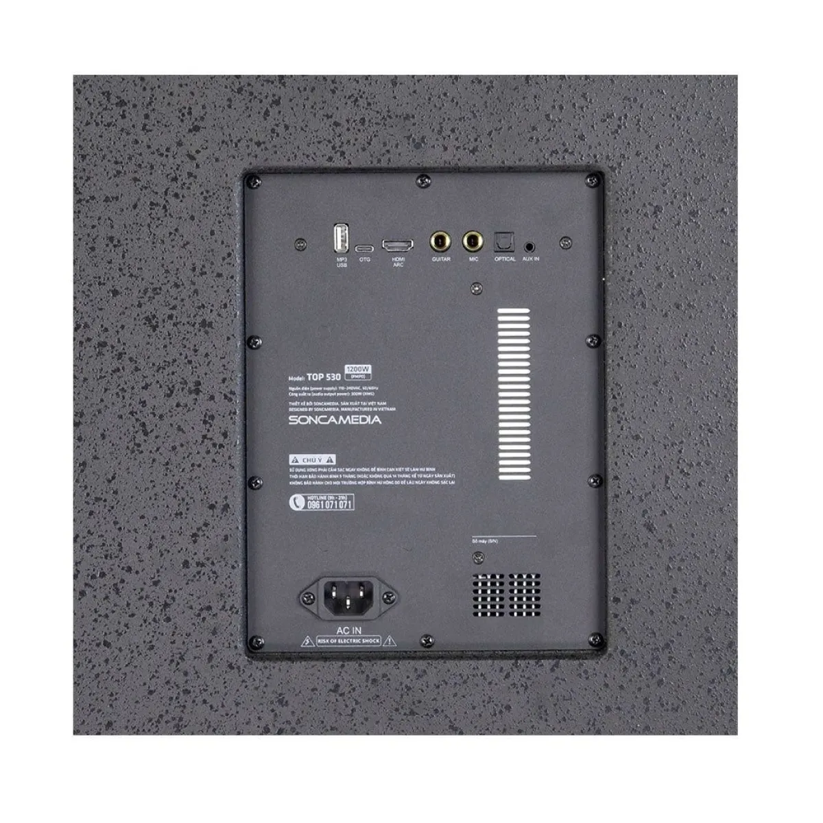 | Cổng kết nối | OTG (USB-C), MP3 USB, HDMI ARC, OPTICAL (IN), AUX IN (jack 3.5mm); GUITAR - MIC (jack 6.35mm) |