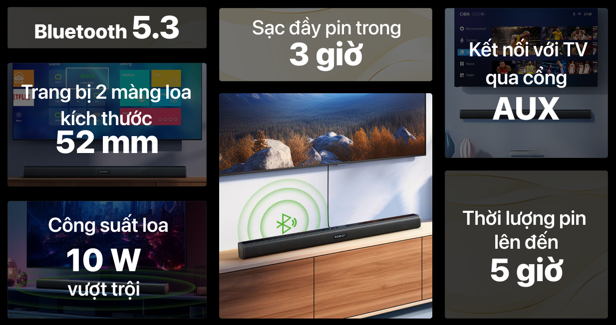 4 chế độ phát lại bài hát (Bluetooth, Thẻ TF, Flashdisk, Aux)