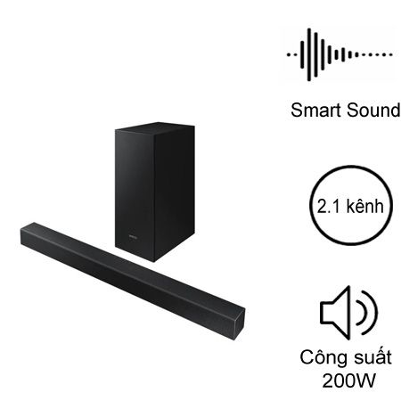Loa Samsung HW-T450 với công suất tổng lên đến 200W cùng loa siêu trầm 6,5 inch nhờ đó người dùng sẽ cảm nhận được trọn vẹn dải âm, âm trầm sâu hơn. Ngoài ra, loa thanh này còn khả năng phát âm thanh vòm mà không cần dây nói hiệu quả.