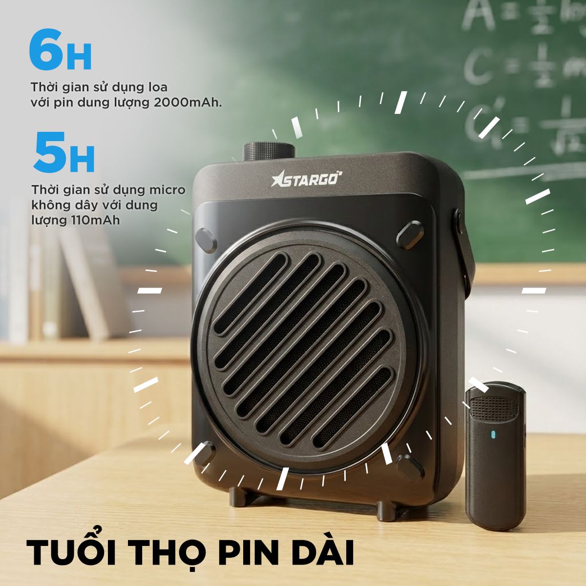 | Dung lượng Pin | Loa: 2000mAh, Micro không dây: 110mAh |