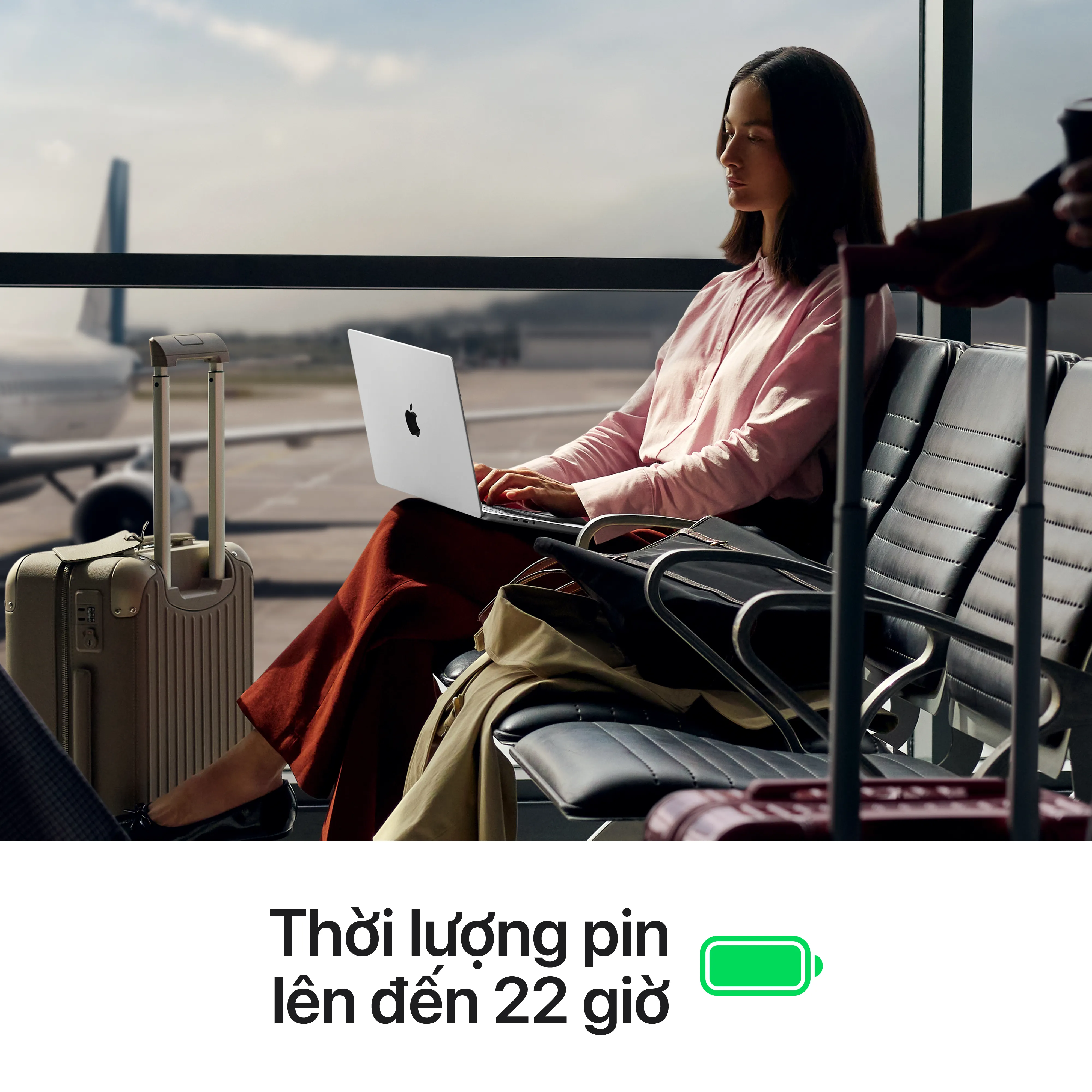 Với dung lượng pin lên tới 72,4Wh, Macbook Pro 14 M5 Pro 18CPU 20GPU 24GB 2TB phù hợp cho các hoạt động từ học tập, làm việc đến giải trí trong nhiều giờ đồng hồ. Theo thông tin từ hãng, thiết bị có thể phát video trực tuyến liên tục trong 22 giờ hoặc duyệt web qua wifi khoảng 14 giờ với điều kiện sử dụng phù hợp.