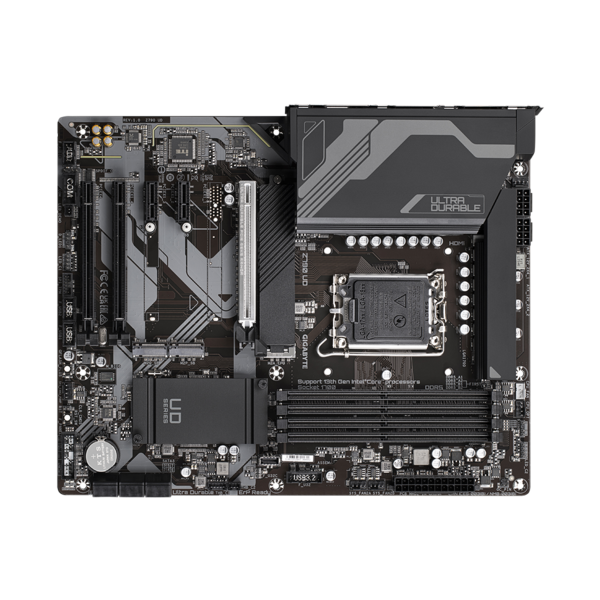 Kết hợp với công nghệ Ultra Durable SMD DDR5 Memory Armor, mainboard Gigabyte Z790 có tuổi thọ lâu dài nhờ trang bị các chân thép không gỉ ở các điểm xuyên qua PCB để gia tăng độ bền khe cắm SMD.