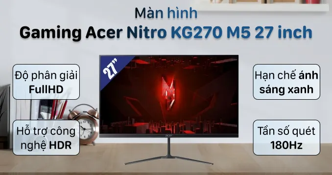 Màn hình Gaming Acer Nitro KG270 M5 27 mang đến không gian giải trí sống động và vô cùng mượt mà cho người dùng. Đây sẽ là lựa chọn mà bất kỳ game thủ nào đang tìm kiếm một màn hình chất lượng cũng không nên bỏ qua.