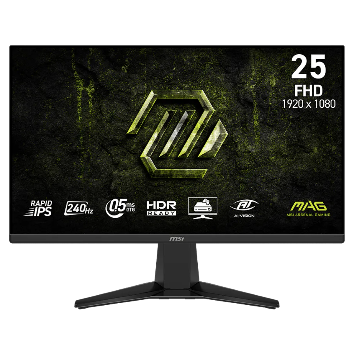 Màn hình Gaming MSI MAG 255F X24 25 inch được thiết kế hướng đến game thủ với cấu hình 240Hz cùng 0.5ms. Bên cạnh hiệu năng hiển thị, màn hình MSI còn tích hợp nhiều công nghệ AI hỗ trợ gameplay và nâng cao trải nghiệm thị giác lâu dài.
