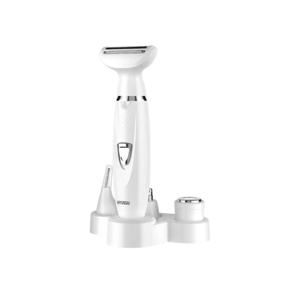 Máy cạo đa năng 4 in 1 Hyundai PHT-089 tích hợp bốn đầu cạo chuyên dụng, đáp ứng đầy đủ nhu cầu chăm sóc cá nhân. Đầu cạo cơ thể xử lý vùng tay, chân, nách, bikini, trong khi đầu xoay tròn giúp cạo vùng mặt êm ái và chính xác hơn.