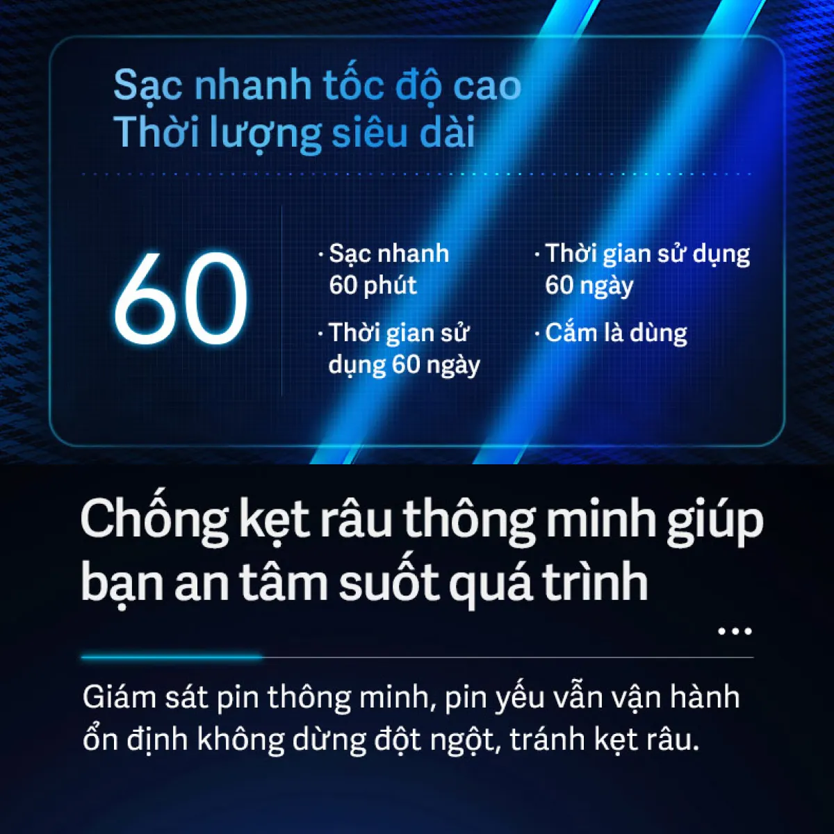 | Thời gian | Dùng liên tục 60 phút, đủ dùng lên đến 60 ngày |