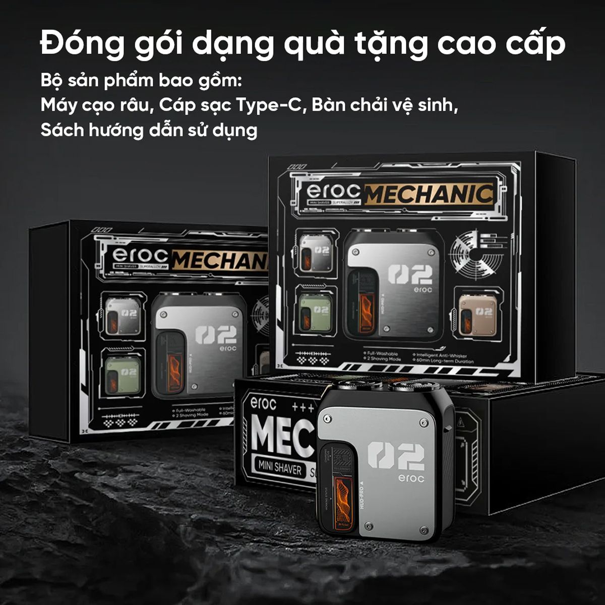 Máy cạo râu mini Eroc Mechanic JXS33 trang bị động cơ mạnh 9000 vòng/phút kết hợp lưỡi cạo 3D gồm 36 lưỡi thép y tế, giúp cạo sát và vận hành êm ái. Sản phẩm trang bị màn hình 3D hiện đại, giúp người dùng dễ dàng theo dõi trạng thái hoạt động của máy. Thân máy làm từ hợp kim nhôm liền khối nhỏ gọn, thuận tiện mang theo khi đi du lịch, công tác.