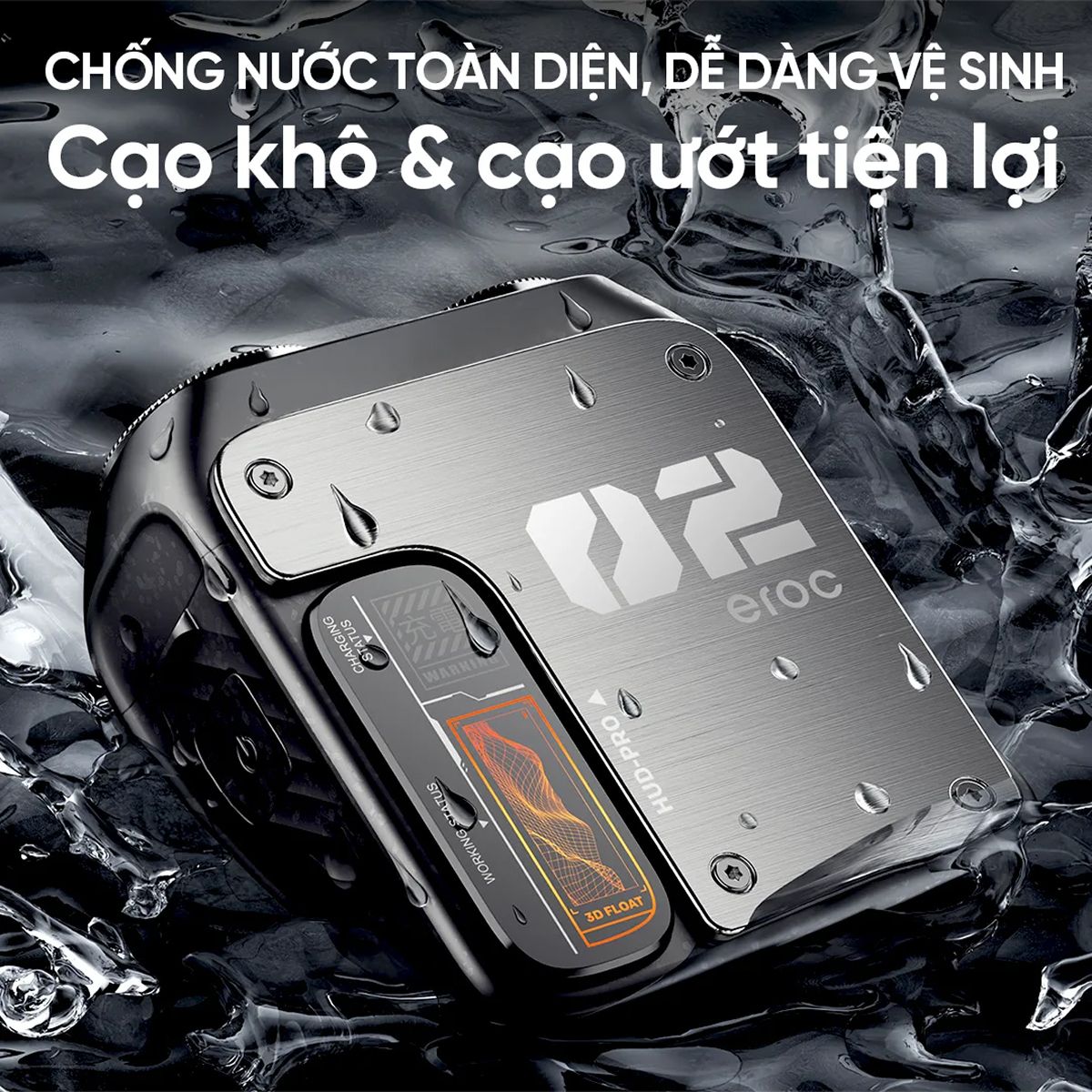 Sản phẩm đạt chuẩn kháng nước IPX7, cho phép vận hành linh hoạt trong nhiều điều kiện khác nhau, bao gồm cả cạo khô và cạo ướt. Người dùng có thể dễ dàng vệ sinh máy, giúp duy trì độ sạch sẽ và tăng tuổi thọ lâu dài. Hơn nữa, máy còn có cổng sạc Type-C, mang lại sự tiện lợi khi sạc pin ở bất kỳ đâu với nhiều loại cáp.