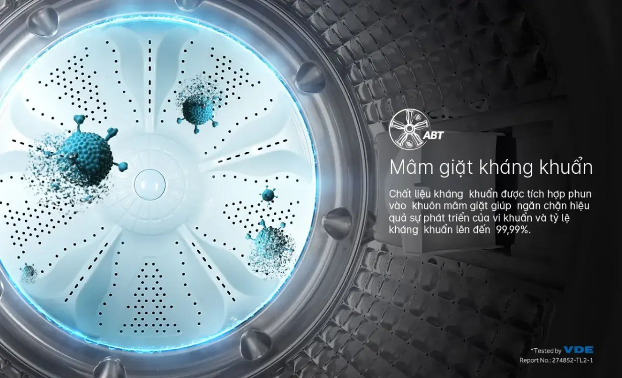 Máy giặt Aqua cửa trên 12kg (AQW-DR120HT.BK) được tích hợp nhiều tính năng tiện ích nhằm tăng hiệu quả giặt giũ. Trong số đó, chế độ giặt lưu hương thơm giúp giữ mùi nước xả lâu hơn trên quần áo. Mâm giặt kháng khuẩn ABT giúp hạn chế tối đa sự phát triển của vi khuẩn, từ đó hỗ trợ bảo vệ sợi vải và hạn chế mùi hôi.
