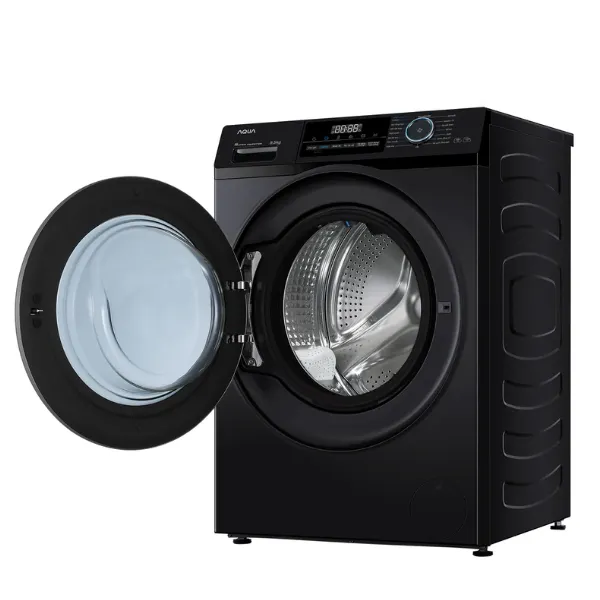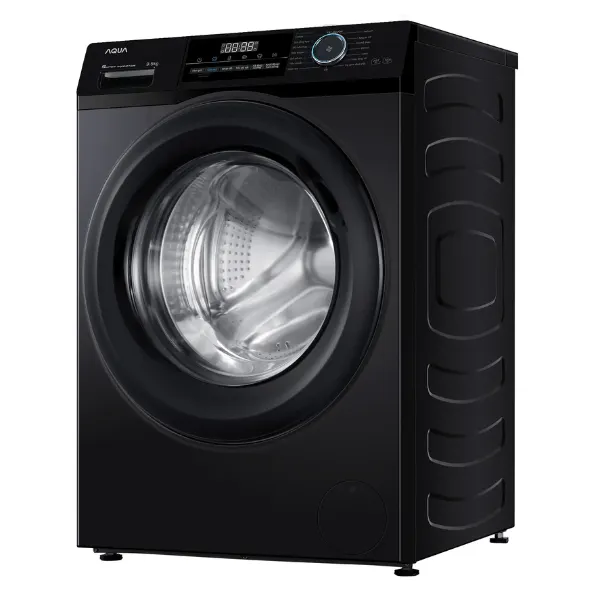 Máy giặt Aqua Inverter 9.5kg AQD-A952J.BK sở hữu thiết kế hiện đại với tông màu đen sang trọng, dễ dàng hòa hợp với nhiều không gian nội thất. Vỏ máy giặt Aqua này được làm từ kim loại sơn tĩnh điện, kết hợp nắp kính chịu lực bền bỉ, không chỉ tăng độ chắc chắn mà còn tạo cảm giác cao cấp.