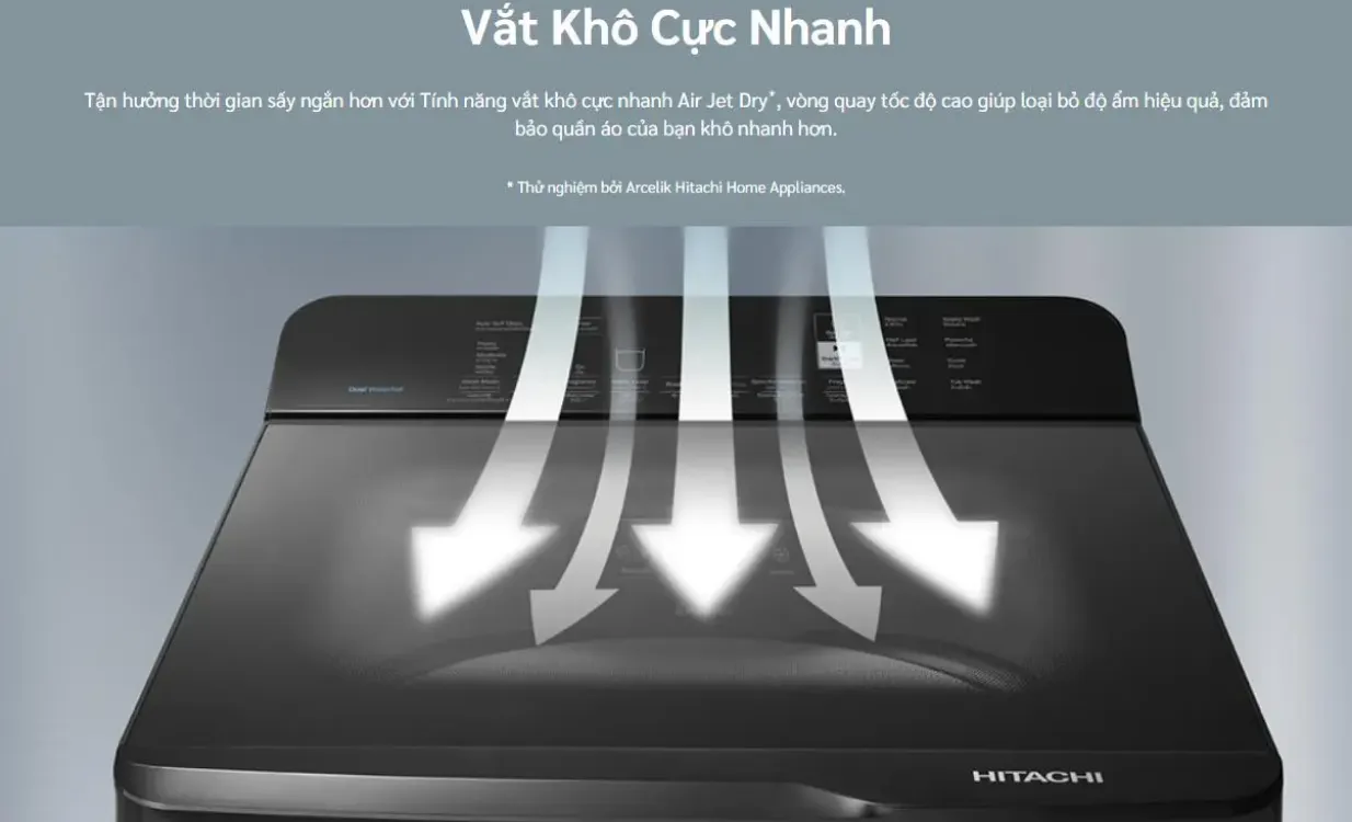 Ngoài ra, tính năng Vắt khô cực nhanh Air Jet Dry với tốc độ quay tối đa 750 vòng/phút hỗ trợ loại bỏ độ ẩm hiệu quả, rút ngắn đáng kể thời gian phơi phóng. Người dùng cũng có thể tận dụng chế độ Giặt Tay với vòi nước tích hợp sẵn để xử lý sơ bộ các vết ố bẩn tại chỗ trước khi đưa vào chu trình giặt chính.