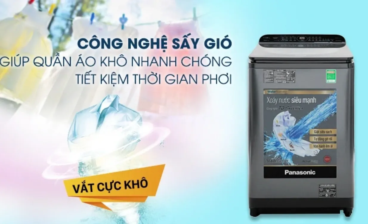Một trong những điểm đặc biệt của mẫu máy giặt cửa trên này là chương trình sấy gió. Với chương trình này, quần áo sẽ còn được sấy và làm khô một cách tự nhiên. Tính năng này giúp tiết kiệm thời gian phơi và hạn chế hiện tượng ẩm mốc trong điều kiện thời tiết nồm ẩm.