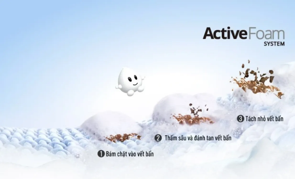 Hệ thống Active Foam giúp máy giặt cửa trên Panasonic NA-FD10AR1BV tạo ra lớp bọt mịn, có mật độ cao. Điều này sẽ giúp nước giặt, bột giặt có thể cuốn, tách và loại bỏ vết bẩn trong từng sợi vải. Công nghệ Tangle Care giúp giảm tình trạng quần áo bị xoắn rối sau khi giặt, giữ trang phục bền đẹp hơn.