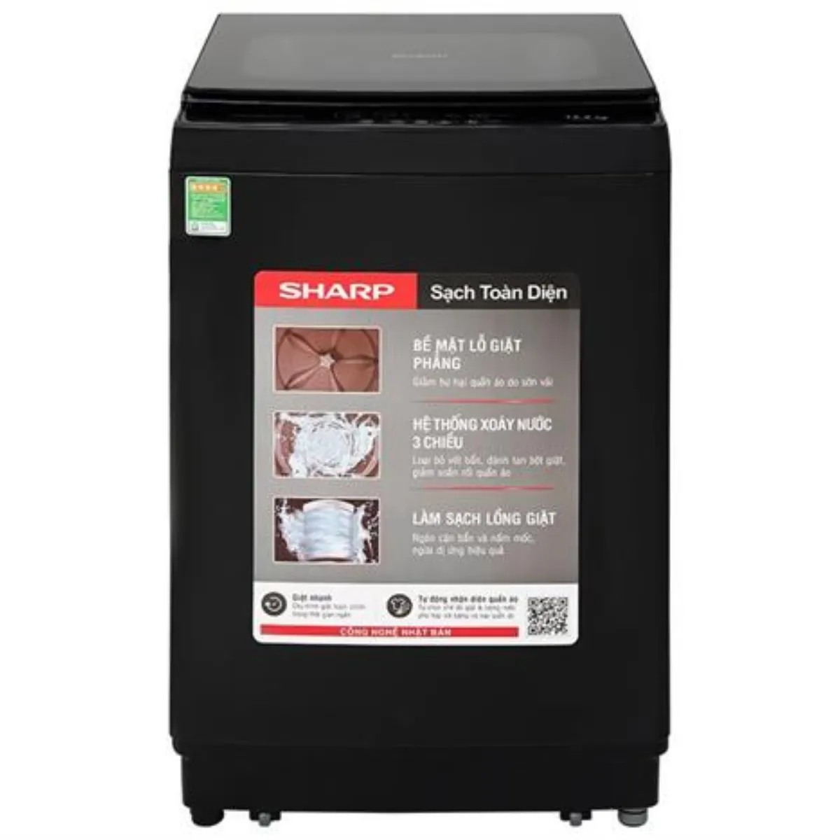 Công nghệ Fuzzy Logic cho phép máy giặt Sharp 12,5kg (ES-TM125CN-BK) tự động nhận biết lượng quần áo trong lồng giặt trước khi bắt đầu vận hành. Dựa trên dữ liệu thu thập được, máy sẽ điều chỉnh mực nước và thời gian giặt phù hợp, giúp quá trình giặt hiệu quả hơn mà không cần người dùng can thiệp thủ công.