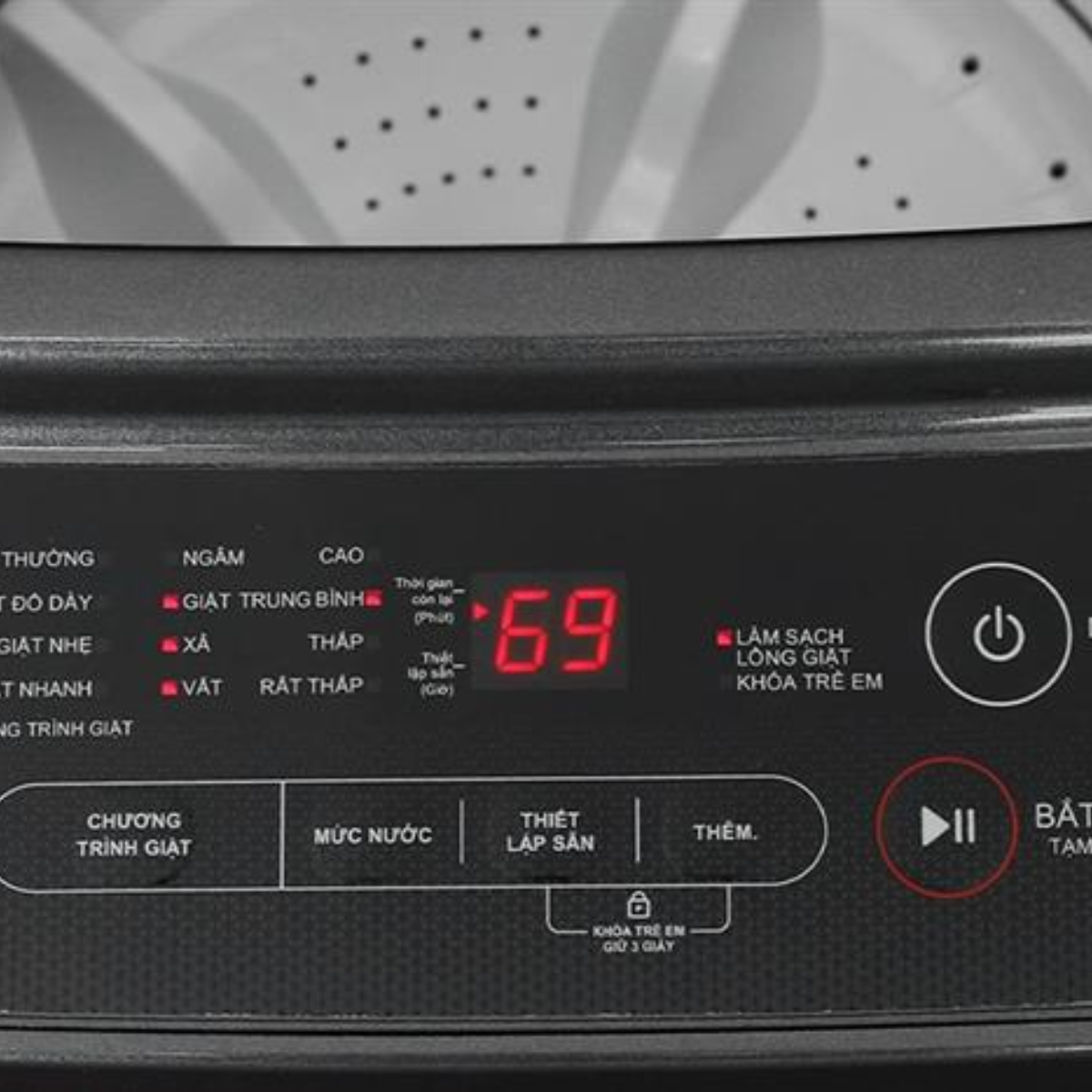 Ngoài ra, máy còn được trang bị nắp máy trợ lực đóng mở nhẹ nhàng, kết hợp khóa trẻ em tăng độ an toàn khi sử dụng. Các tính năng như hẹn giờ giặt, đèn LED hiển thị rõ ràng và âm thanh cảnh báo lỗi giúp người dùng dễ theo dõi và xử lý kịp thời khi có sự cố.