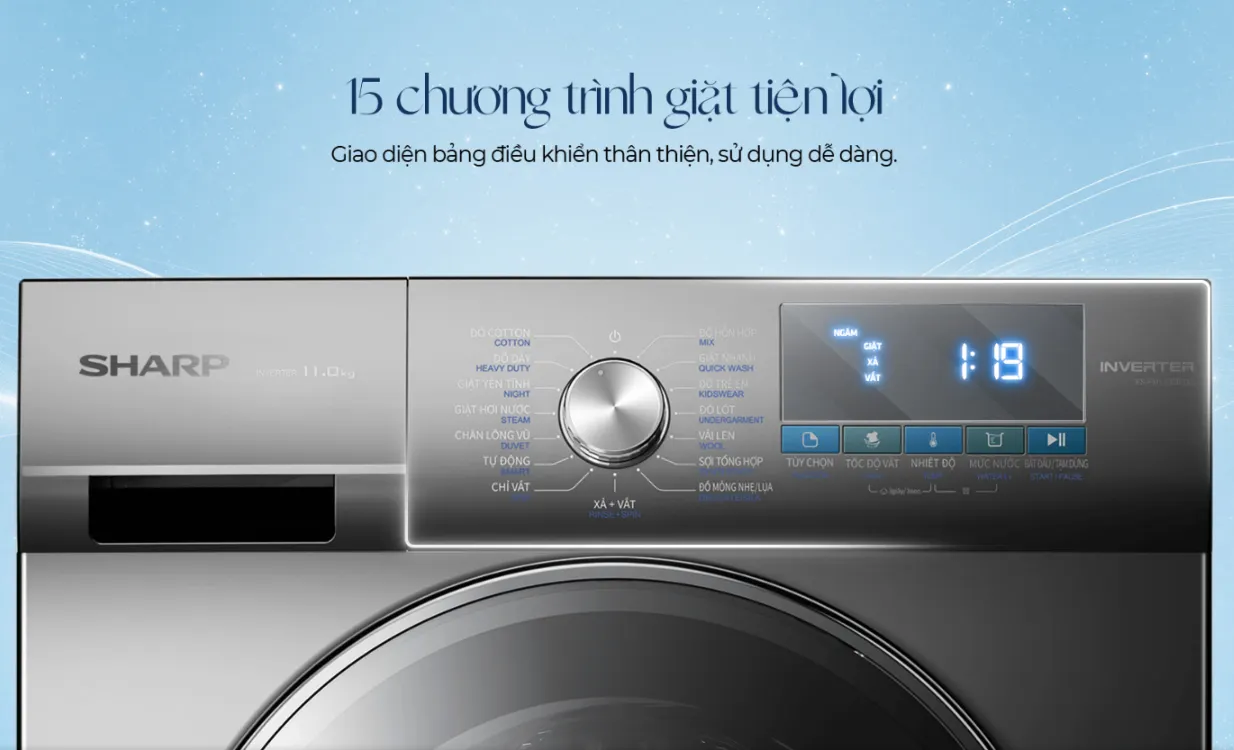 15 chương trình giặt tùy chọn linh hoạt