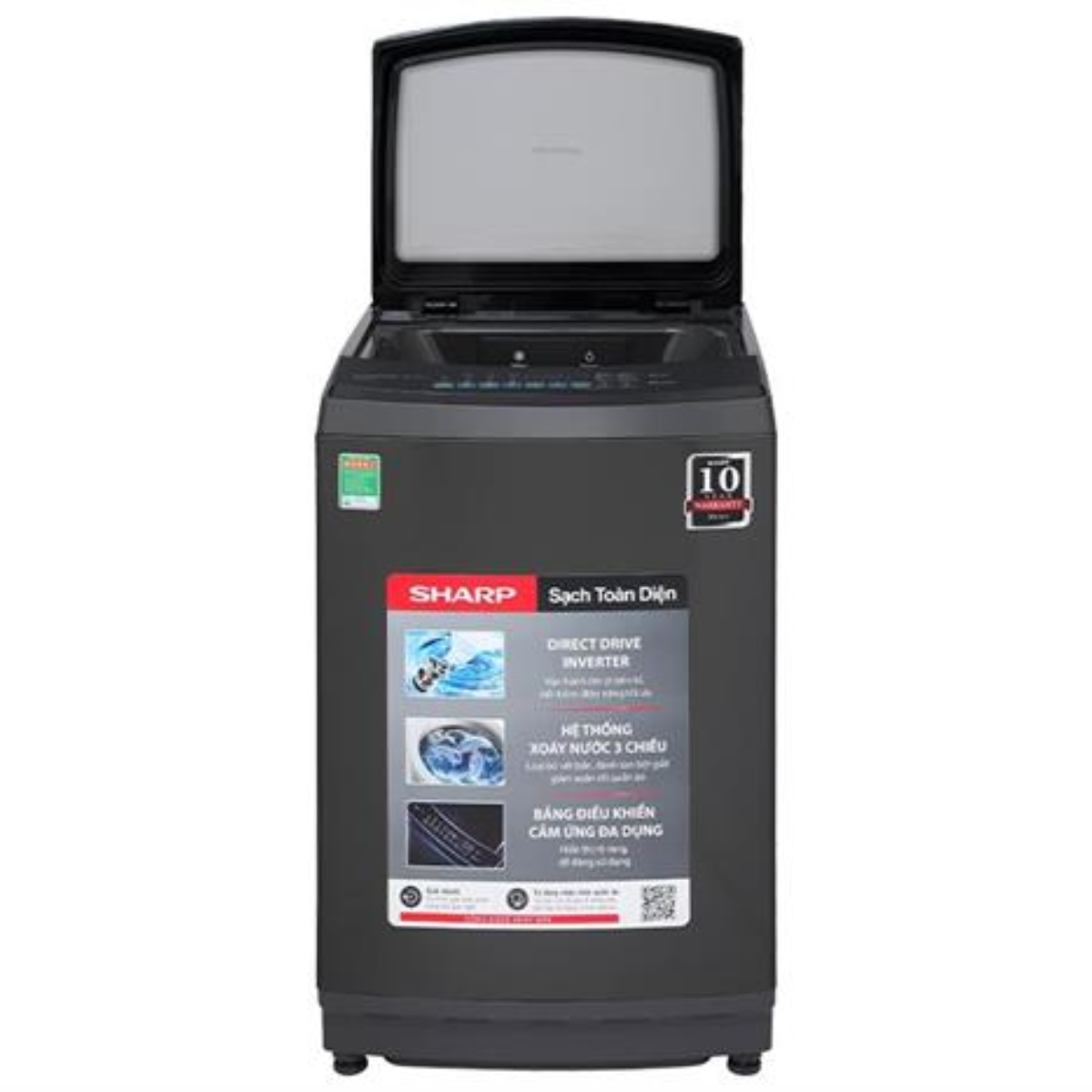 Mẫu máy giặt Sharp có cửa trên này là sự kết hợp hài hòa giữa khối lượng giặt lớn và động cơ truyền động trực tiếp mạnh mẽ, mang lại hiệu quả làm sạch tối ưu. Thiết bị sở hữu diện mạo thời thượng, chạy êm ái và chăm sóc sợi vải luôn bền đẹp.