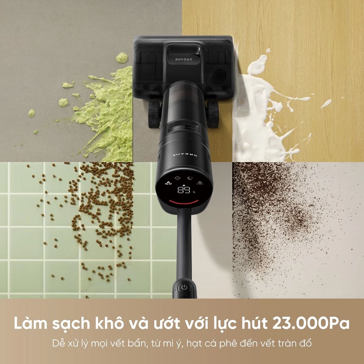 Dreame H13 Dual FlexReach sở hữu lực hút lên đến 23.000Pa, dễ dàng xử lý cả bụi khô, tóc, mảnh vụn và chất lỏng. Công nghệ cảm biến nhận diện vết bẩn tự động điều chỉnh lực hút phù hợp, tối ưu hiệu quả làm sạch mà vẫn tiết kiệm năng lượng. Cuộn lăn hoạt động 480 vòng/phút giúp hút và lau đồng thời, loại bỏ bụi mịn và dầu mỡ bám cứng trên sàn.