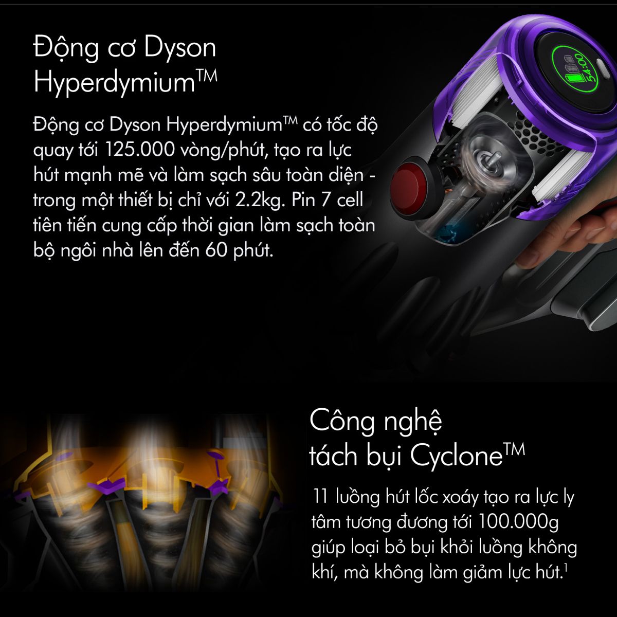 Hút bụi hiệu quả với công nghệ Cyclone và động cơ Dyson Hyperdymium