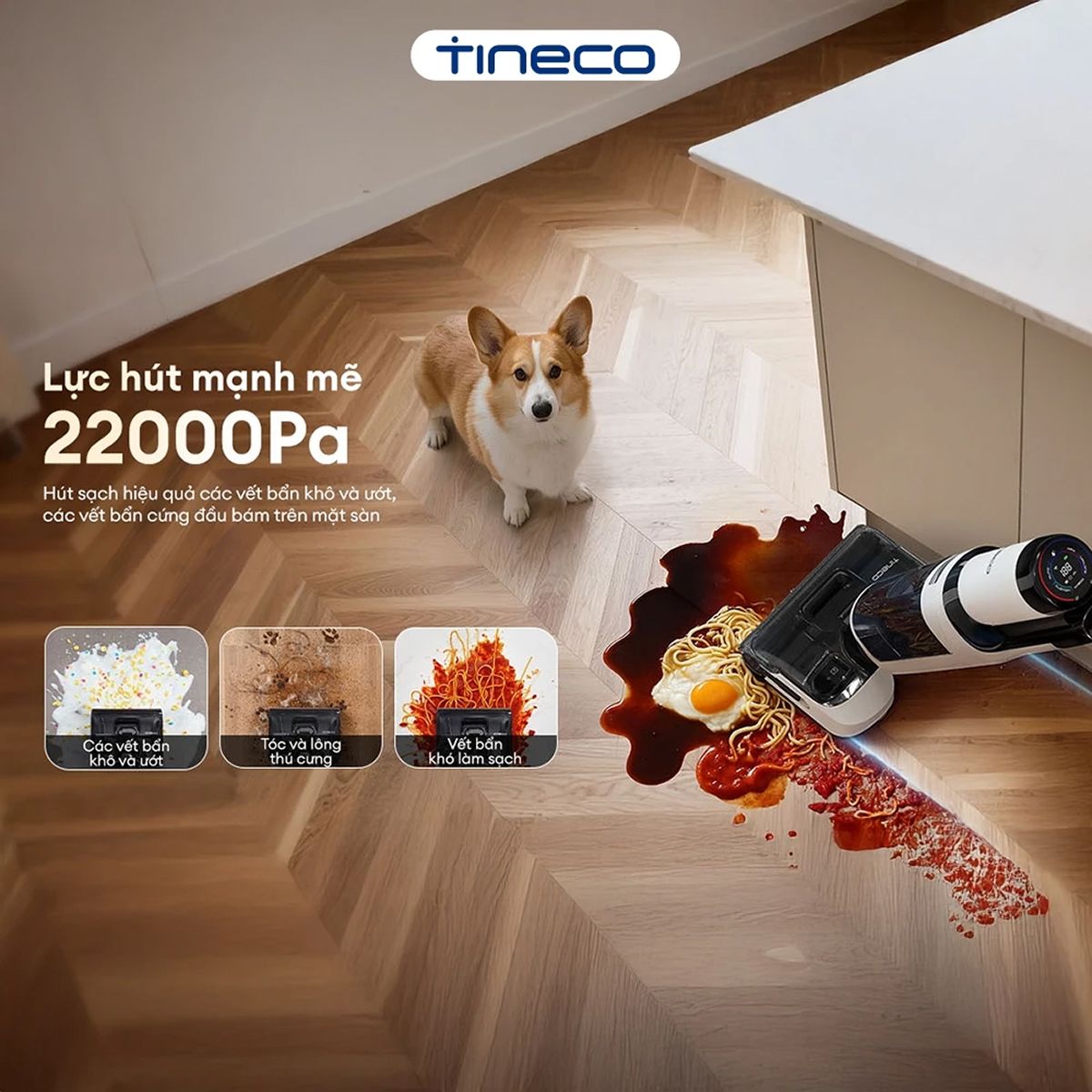 Máy hút bụi Tineco sở hữu lực hút 22.000Pa