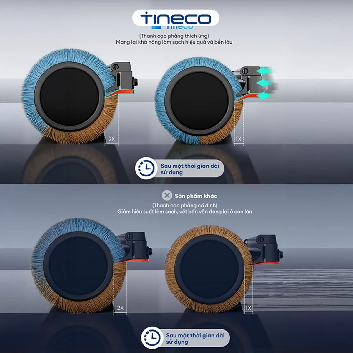 Công nghệ MHCBS hỗ trợ thiết bị làm sạch con lăn bằng nước sạch trong suốt quá trình vận hành để hạn chế để lại vệt bẩn. Hệ thống này giúp duy trì hiệu suất làm sạch con lăn liên tục và ngăn ngừa tình trạng lây lan vi khuẩn giữa các khu vực khác nhau trong gia đình.