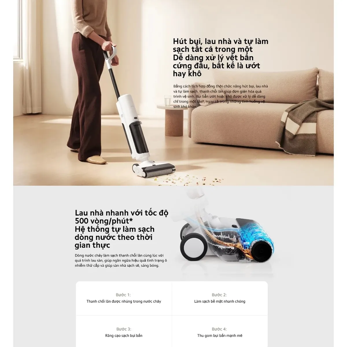 | Tiện ích | Tích hợp 3-in-1: hút bụi, lau nhà và tự động làm sạch con lăn |