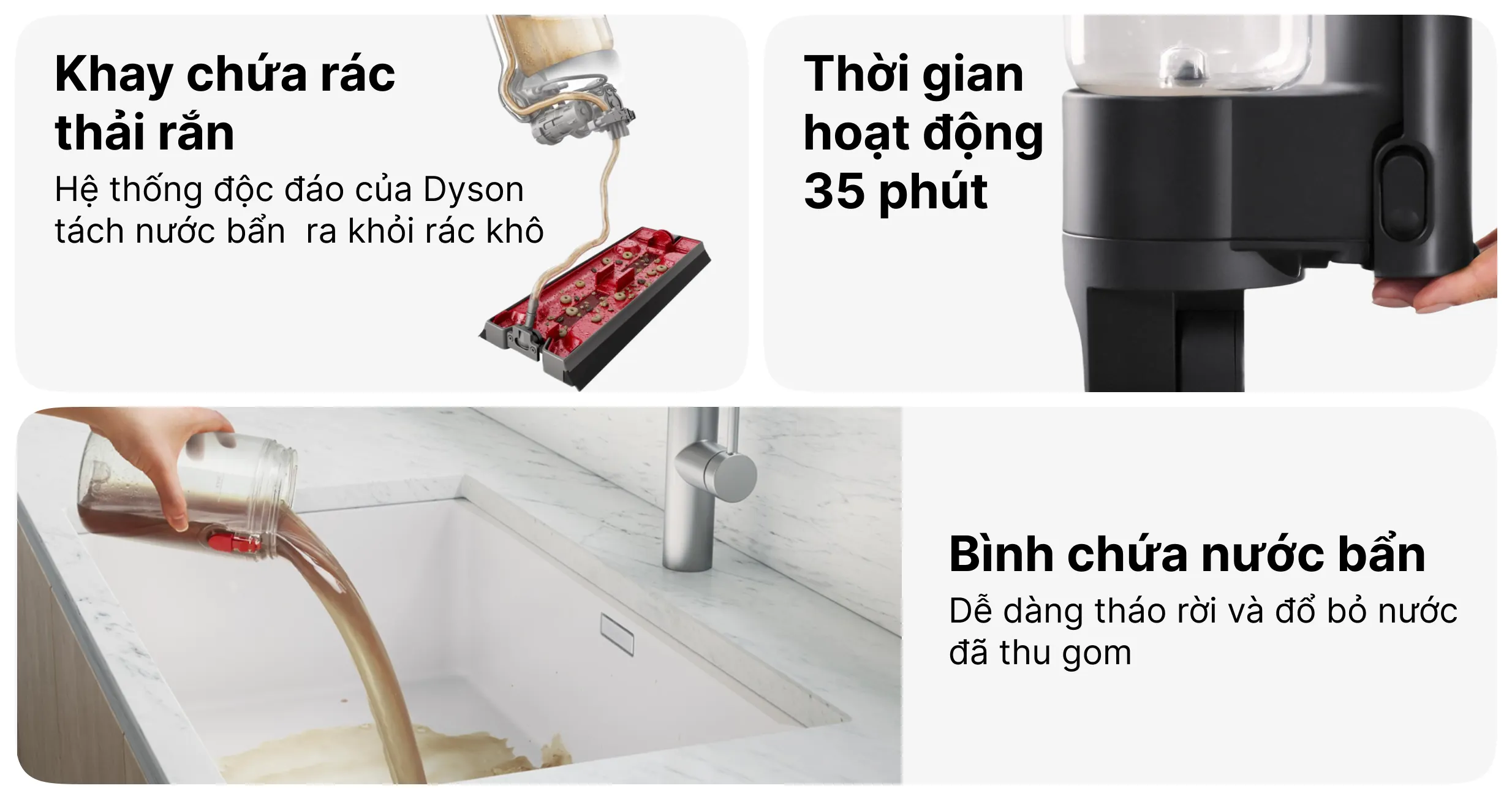 | Tính năng | Tự động hút bụi, Tự động giặt giẻ, Tự động sấy giẻ |