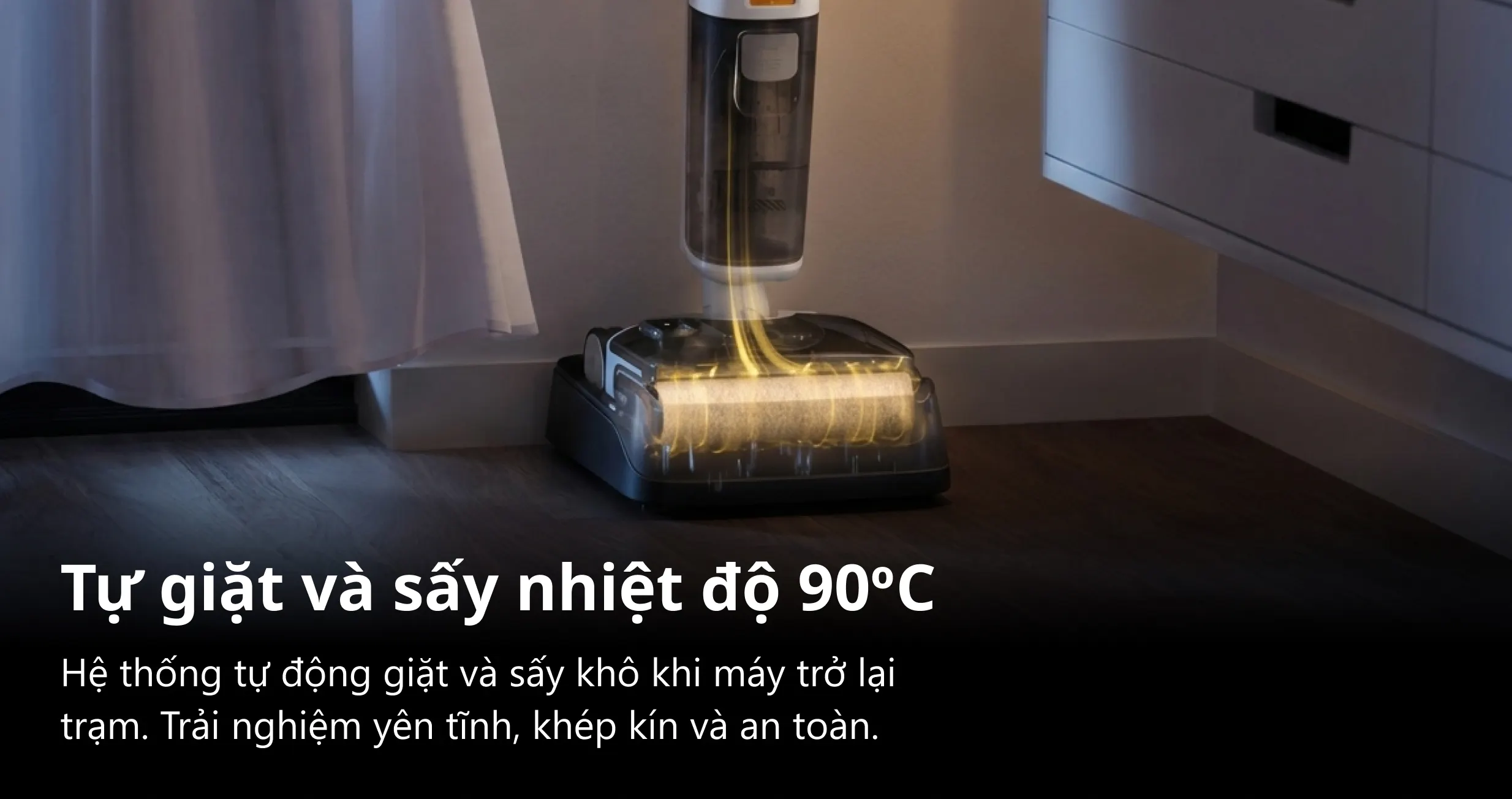 Hỗ trợ lau nhà, Chống rối tóc - lông thú, Tự động giặt giẻ, Tự động sấy giẻ