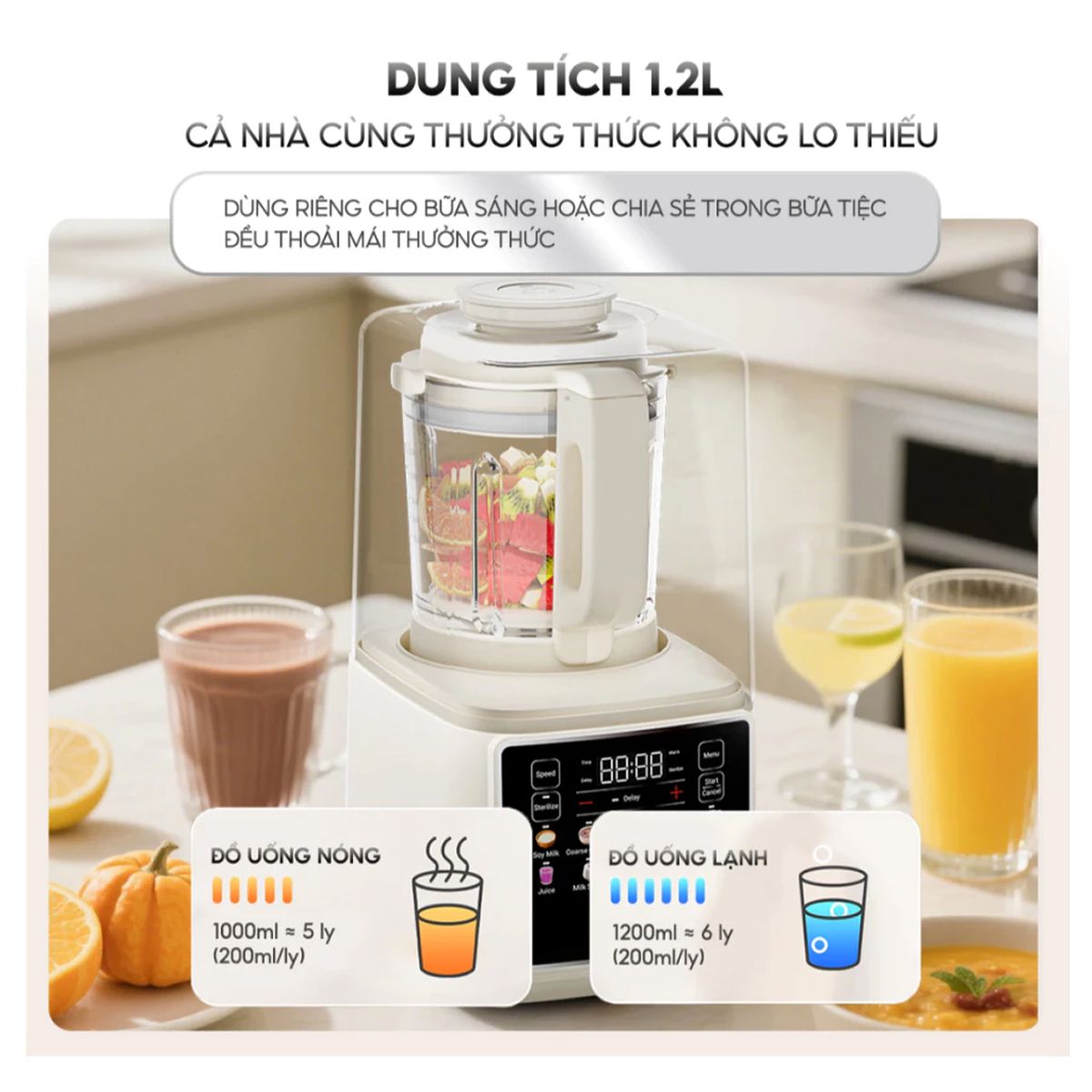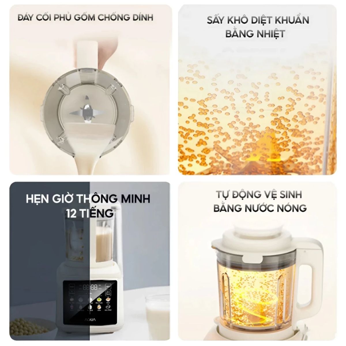 Tính năng hẹn giờ 12 tiếng đem lại sự linh hoạt khi chuẩn bị nguyên liệu và sắp xếp thời gian nấu, rất phù hợp với những người có lịch trình bận rộn. Chế độ giữ ấm 4 tiếng sau khi hoàn tất quá trình nấu giúp bảo toàn độ nóng và thơm béo của sữa.
