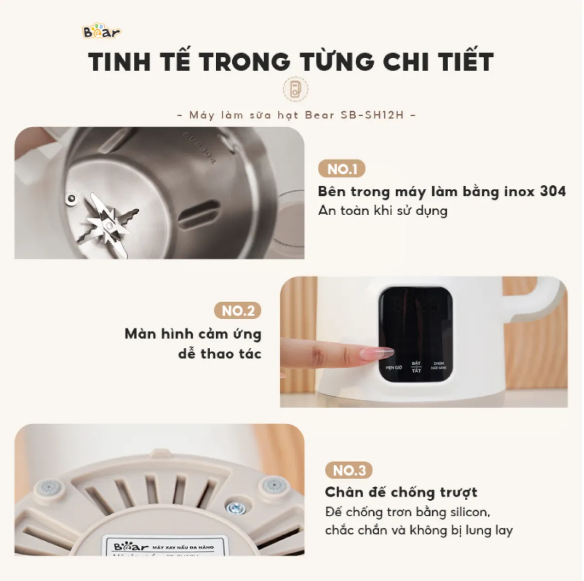 Tiện ích | Điều khiển cảm ứng, Hẹn giờ, Chân đế chống trượt |
