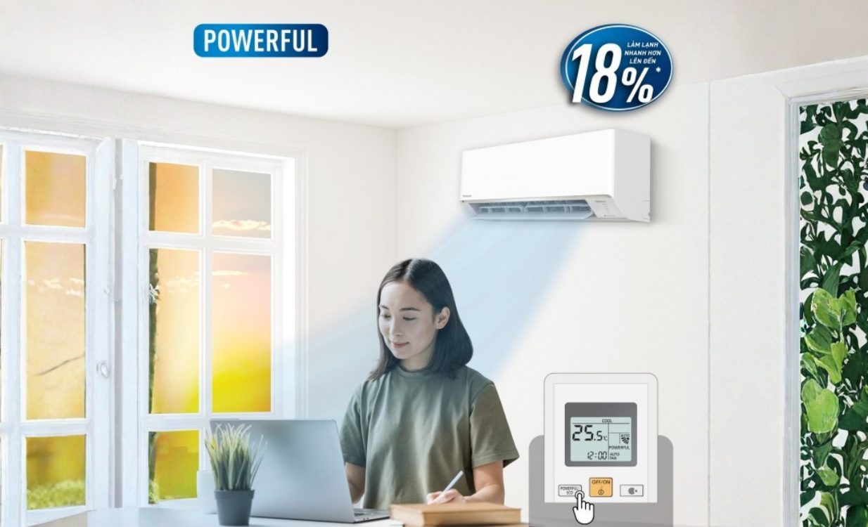 Chế độ POWERFUL trên máy lạnh Panasonic Inverter 2.5HP CU/CS-YZ24BKH-8 giúp đẩy công suất máy nén và quạt dàn lạnh lên mức cao. Nhờ cơ chế này, khả năng làm mát được nâng cao, nhanh hơn khoảng 18%.