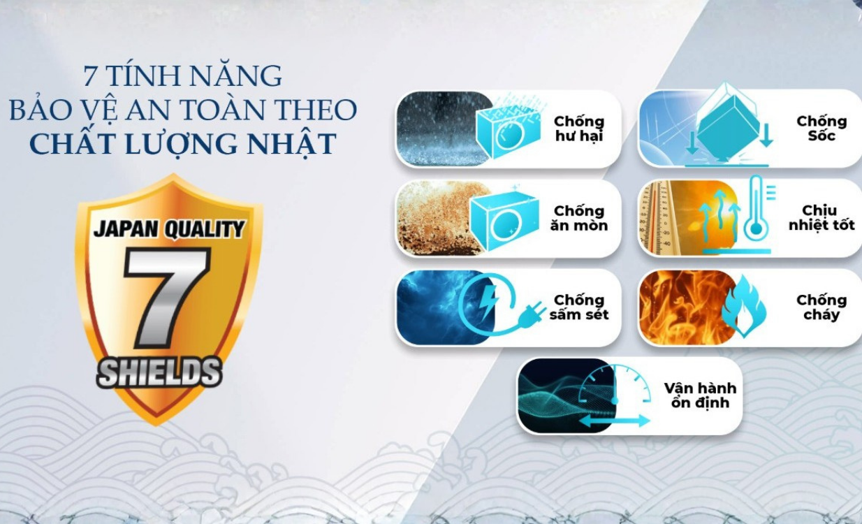 Để tăng độ an toàn trong quá trình sử dụng, Sharp còn trang bị cho mẫu điều hòa 2 HP này tới 7 tính năng bảo vệ theo chất lượng Nhật Bản. Điều hoà có thể kháng ăn mòn, hư hại do thời tiết cực đoan, va đập, sấm sét cũng như chịu nhiệt độ cao tốt.