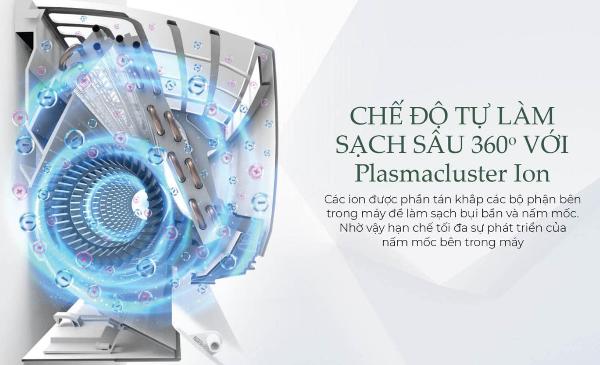Ngoài khả năng giúp không khí trong lành, Plasmacluster Ion còn hỗ trợ làm sạch sâu điều hoà. Cụ thể, các ion âm và ion dương được tạo ra sẽ phân tán tới mọi bộ phận bên trong điều hoà để loại bỏ bụi bẩn và nấm mốc. Nhờ đó, tình trạng mùi hôi phát ra từ điều hoà cũng sẽ được loại bỏ trên Sharp AH-XP18CSWA.