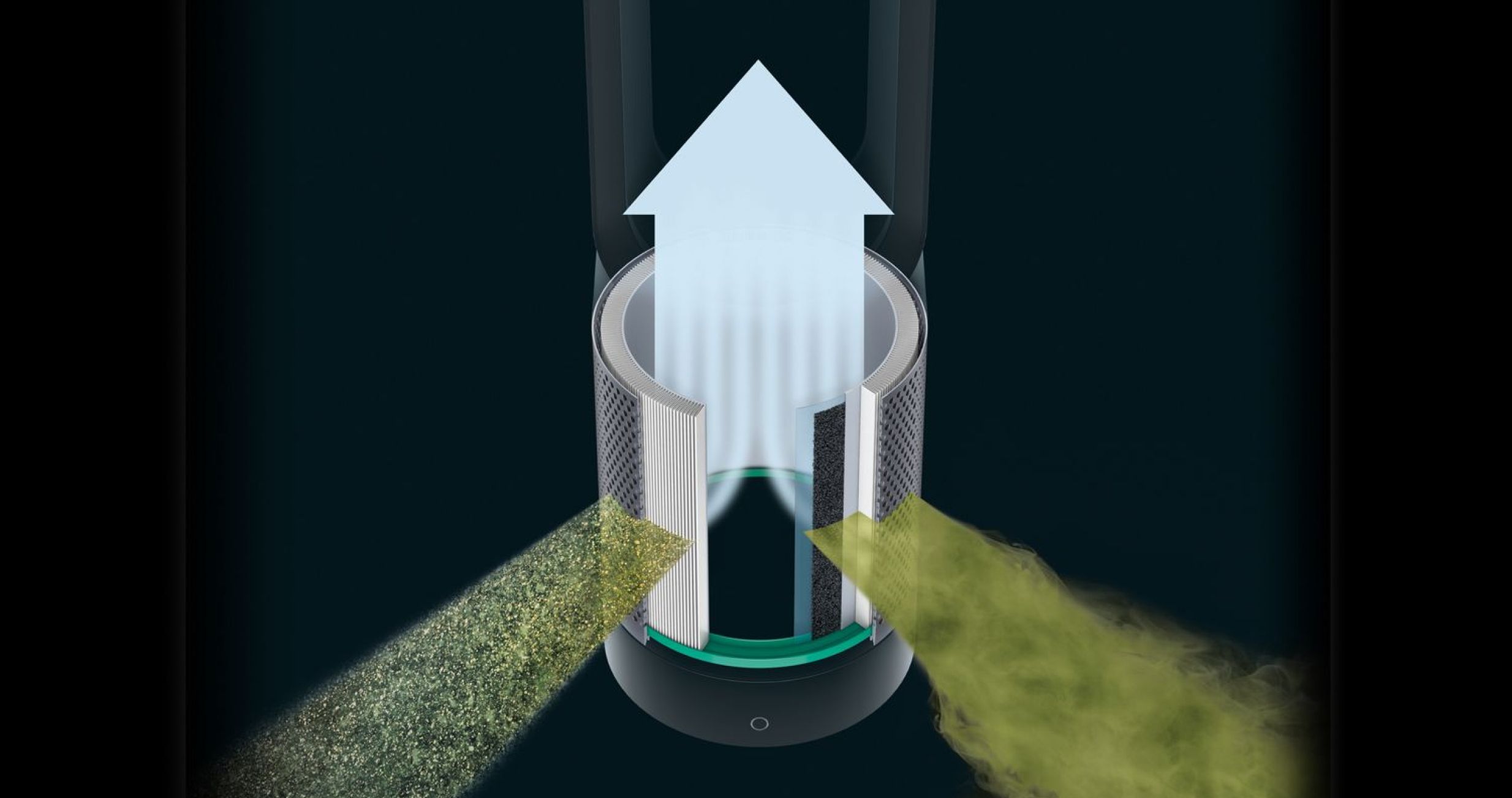 Máy lọc không khí Dyson Pure Cool Tower TP00 có bộ lọc 360° Glass HEPA loại bỏ đến 99,95% các hạt bụi siêu mịn với kích thước PM0.1, kể cả phấn hoa và vi khuẩn. Công nghệ Air Multiplier™ khuếch đại luồng khí đã lọc đều khắp phòng, tạo cảm giác mát dịu và dễ chịu.