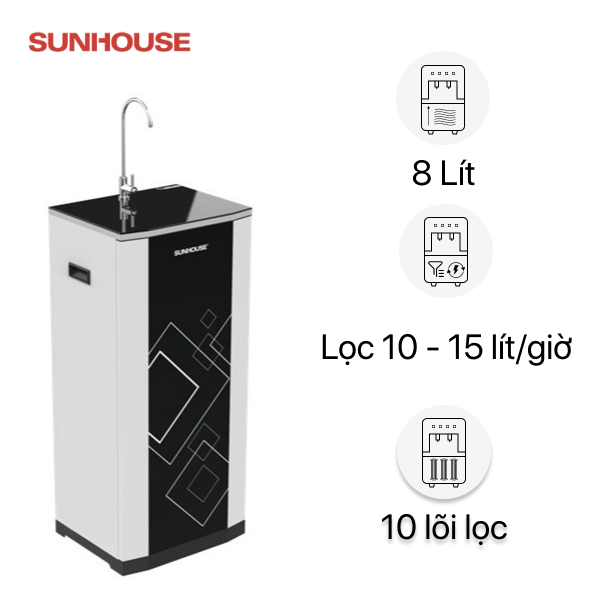 Máy lọc nước Sunhouse SHA88511K được trang bị 10 lõi lọc với màng lọc R.O, giúp loại bỏ hiệu quả các chất gây ô nhiễm trong nước như cặn, clo, vi khuẩn, chì, kim loại nặng và các tạp chất có hại khác.