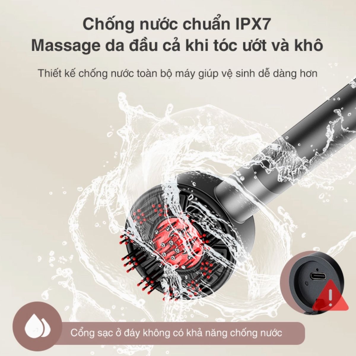Thiết bị sở hữu tiêu chuẩn IPX7, giúp vận hành bền bỉ trong điều kiện ẩm mà vẫn an toàn cho các linh kiện bên trong. Tuy nhiên, lưu ý khi sử dụng thiết bị cần đóng nắp cổng sạc, để tránh hư hại thiết bị. Nhờ thiết kế này, người sử dụng có thể thoải mái trải nghiệm thư giãn mà không lo gián đoạn.