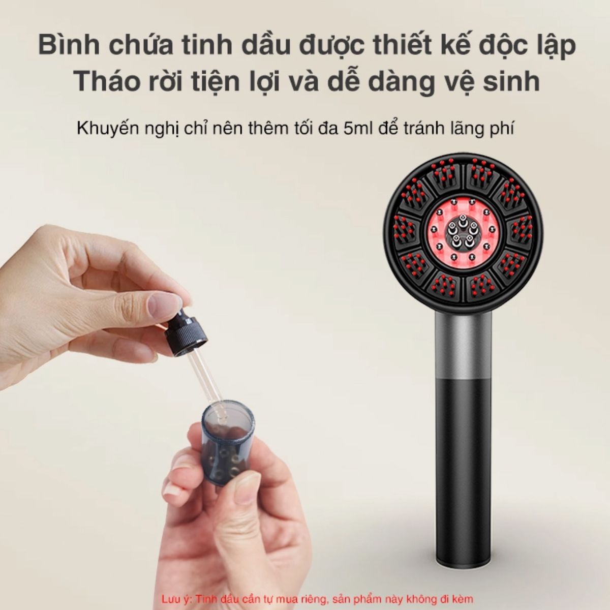 Máy Massage Bomidi MG4 tích hợp hộp chứa tinh dầu tháo lắp nhanh chóng, cho phép người dùng bổ sung khoảng 5ml thuận tiện. Khi kết hợp cùng tinh dầu, dưỡng chất sẽ thấm sâu vào da đầu, mang đến cảm giác thư giãn hỗ trợ cho mái tóc khỏe mạnh.