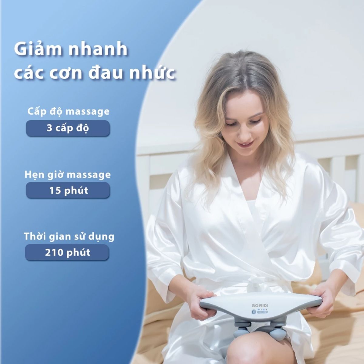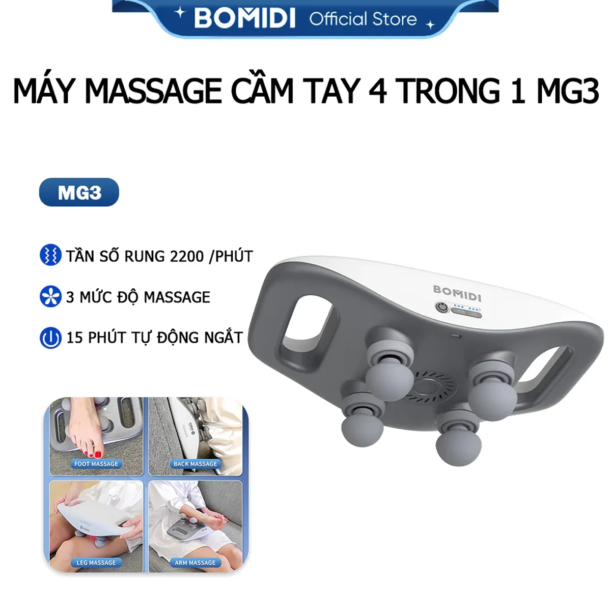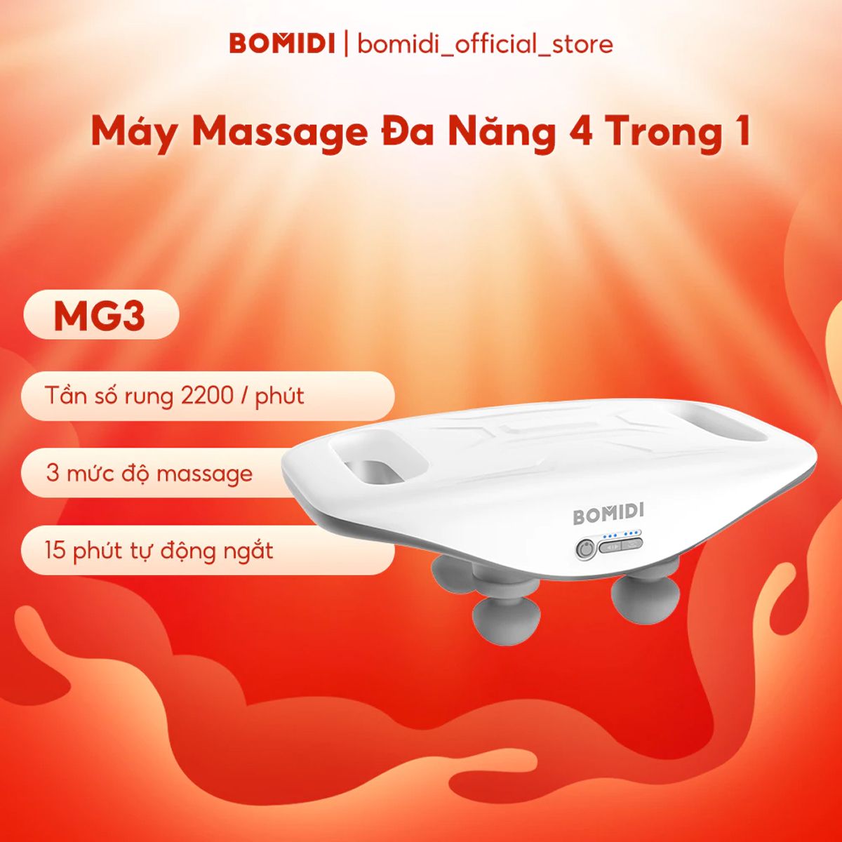 Bomidi MG3 mang đến trải nghiệm thư giãn dễ chịu với thiết kế hiện đại và thao tác sử dụng tiện ích. Sản phẩm giúp giải tỏa căng cơ nhanh chóng, phù hợp cho nhu cầu chăm sóc sức khỏe và phục hồi năng lượng hằng ngày.