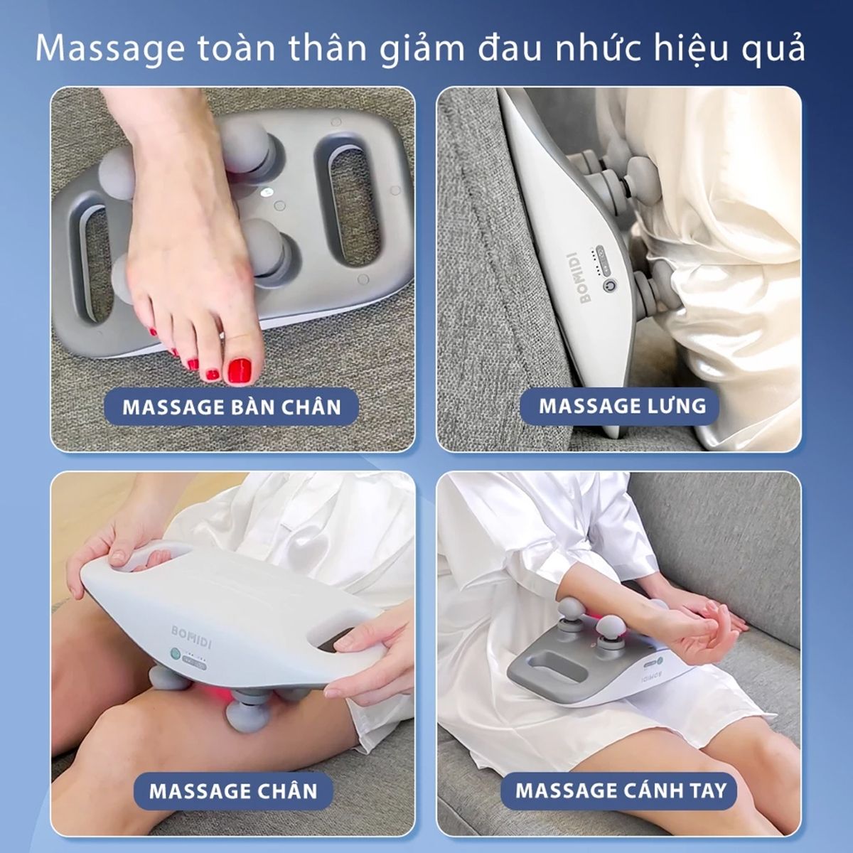 | Vùng massage | Bàn chân, chân, lưng, cánh tay |