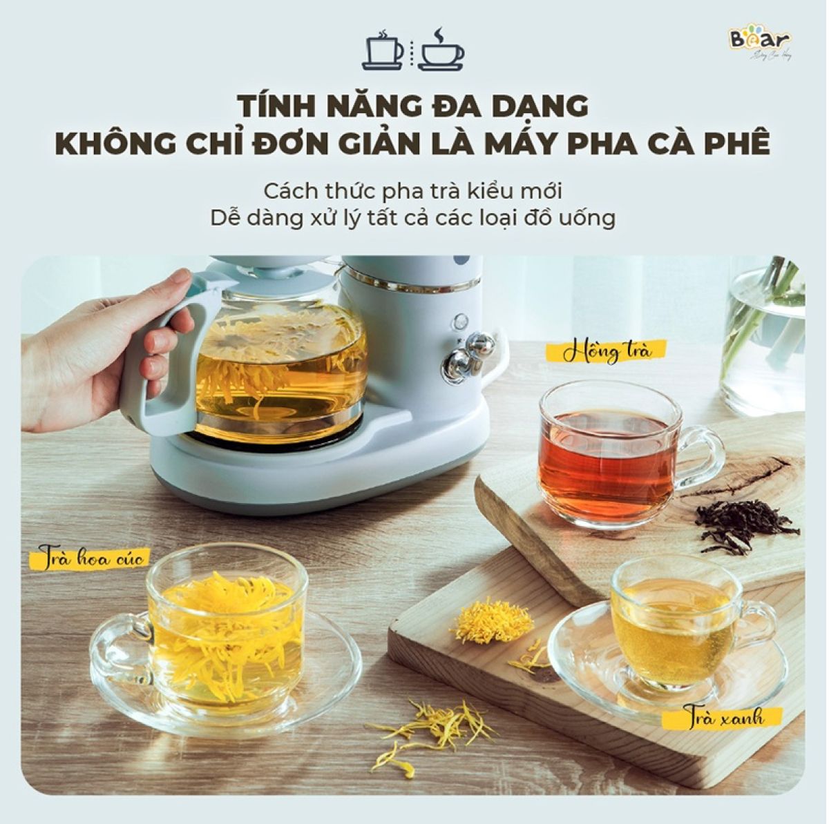 Ngoài pha cà phê, máy còn có thể sử dụng để pha trà nhờ khả năng kiểm soát nhiệt độ ổn định. Sau khi hoàn tất, máy tự động chuyển sang chế độ giữ ấm, giúp thức uống luôn duy trì được độ nóng vừa phải.